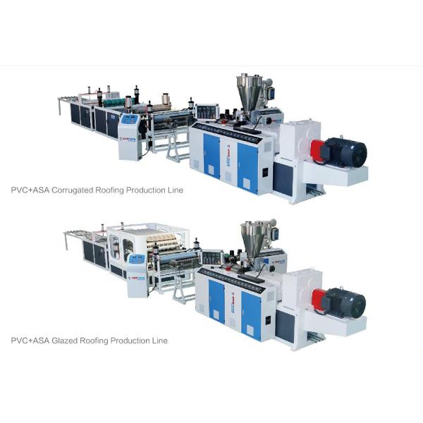 | Description final product & Output capacity | Single layers UPVC Roofing tile; Width:880 or 1050mm,Thickness: 2~4.0mm; Wave distance:180mm; Wave height:30mm; Output:200-350kg/h(Depending on CaCO3 proportion) |